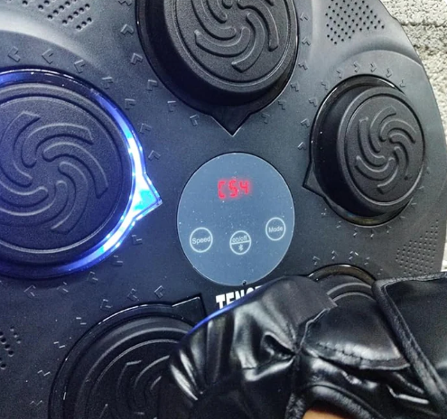 1.Cuando las luces LED de alguno de los “pads ” se enciendan — golpea ese punto con tus puños (preferiblemente con los guantes incluidos) al ritmo de la música. La máquina detectará el impacto y registrará el golpe.